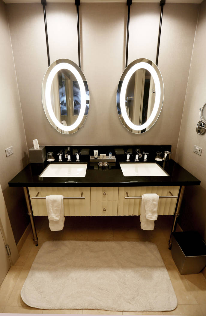 A newly renovated bathroom in a wraparound room at The Cosmopolitan of Las Vegas in Las Vegas, Tuesday Oct. 10, 2017. Elizabeth Brumley Las Vegas Review-Journal @EliPagePhoto