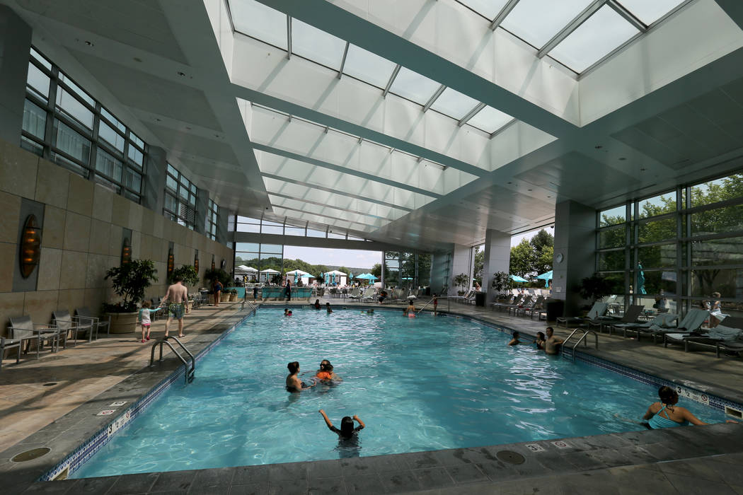 A centerpiece attraction off the main hotel lobby is “River Blue,” a 10,000-pound glass sculpture by Dale Chihuly, the artist who created the multicolored glass ceiling piece at the front desk of Bellagio in Las Vegas. The 2,500 blown-glass pieces were assembled at the base of Taughannick Falls, a 55-foot indoor waterfall representing a treacherous crossing of converging waters during the tribe’s migration.