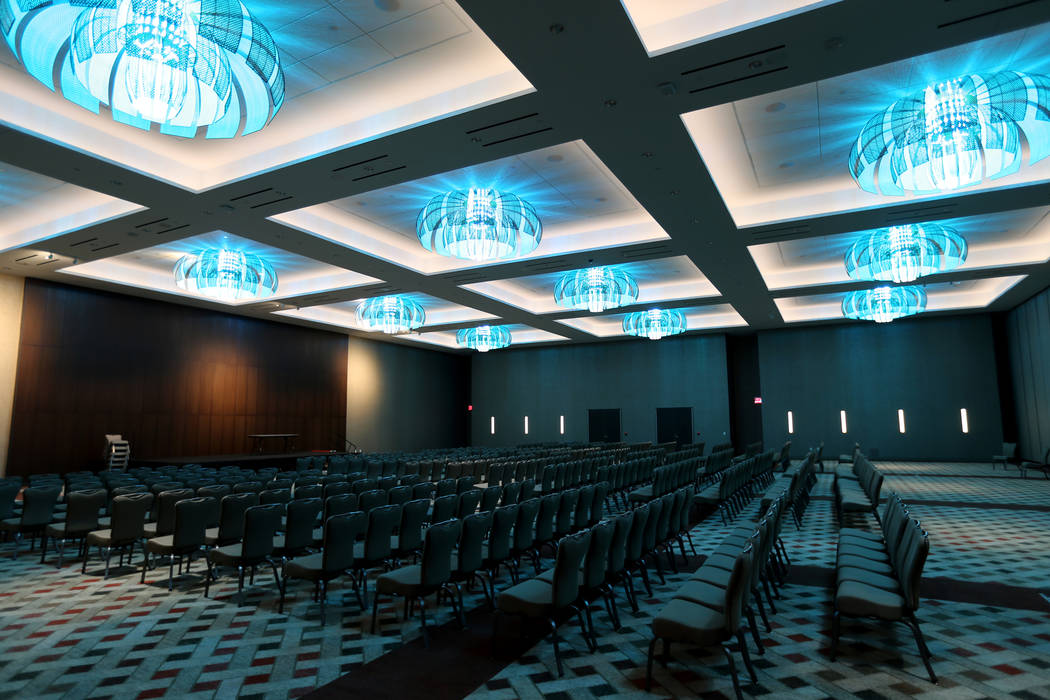 The property is intricately adorned with tributes to the Mohegan Indian Tribe — “the Wolf People” — while building on conventions and meetings and the popularity of sports.