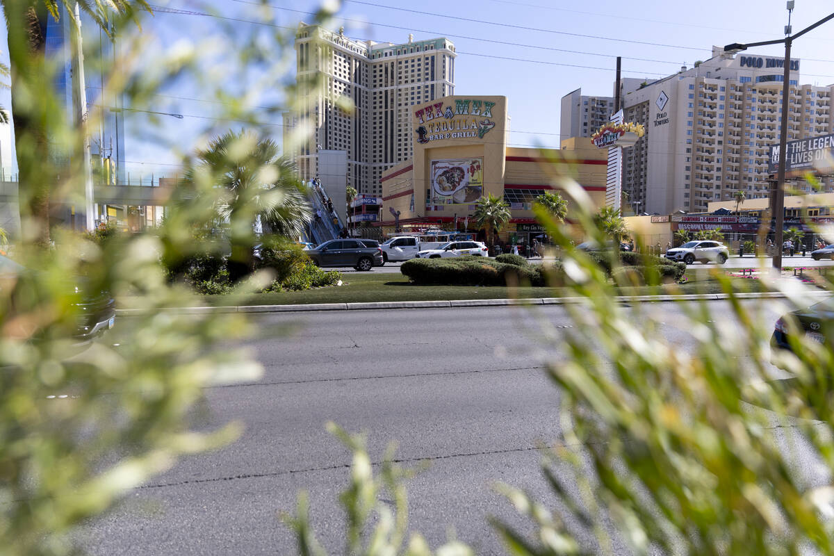Fertitta’s 6-acre spread, at the southeast corner of Las Vegas Boulevard and Harmon Avenue, is home to the Tex Mex Tequila Bar &Grill building, a cluster of souvenir shops and a 1960s-era Travelodge motel property that had closed by July.