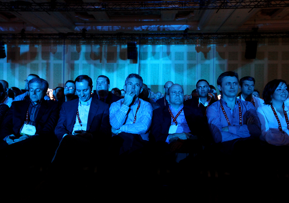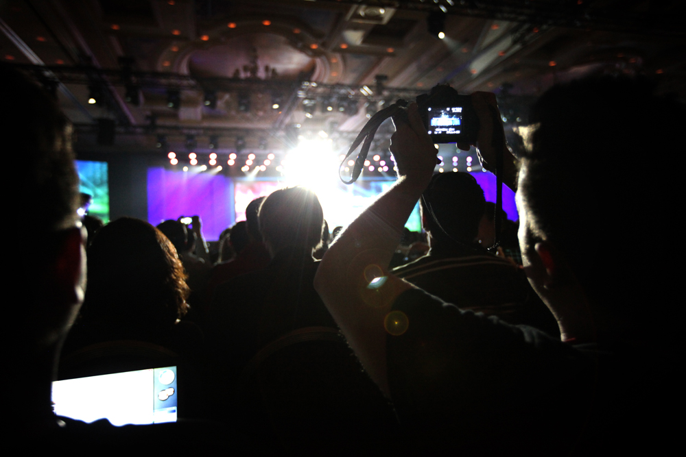 Hundreds of people packed ballrooms during the 2012 Consumer Electronic Show media preview day on Jan. 9. Companies, including Samsung, LG Electronics, Intel, Sharp and Panasonic, introduced new products at the event. Microsoft chief executive Steve Ballmer finished the evening with the CES keynote speech.