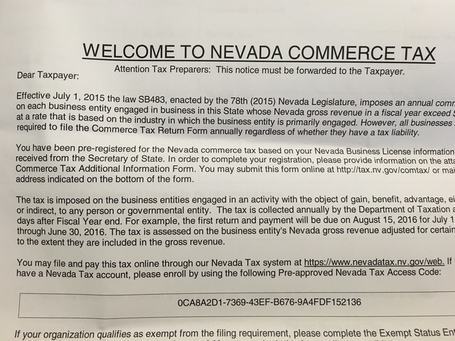 The commerce tax was part of a $1.5 billion revenue package pushed by Gov. Brian Sandoval and approved by the 2015 Legislature to fund the state budget and the governor’s education agenda.