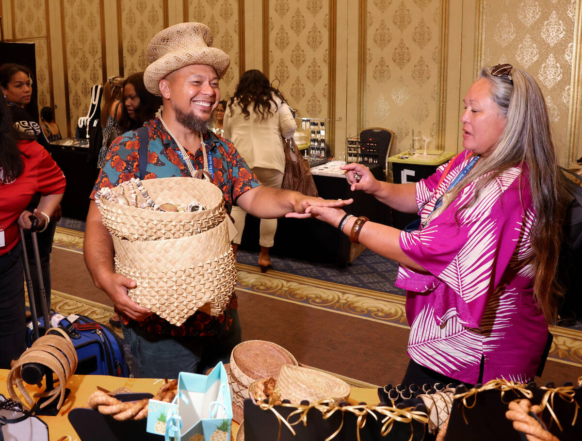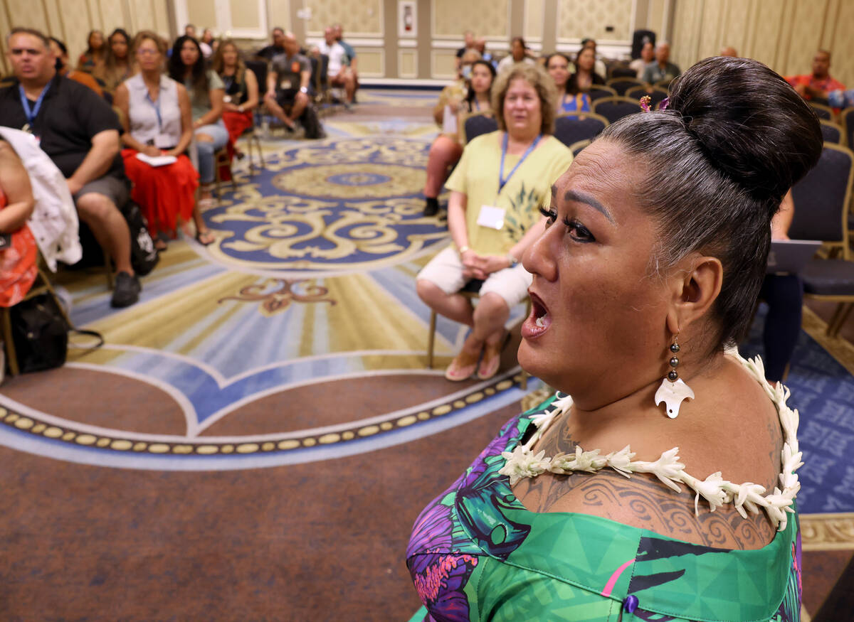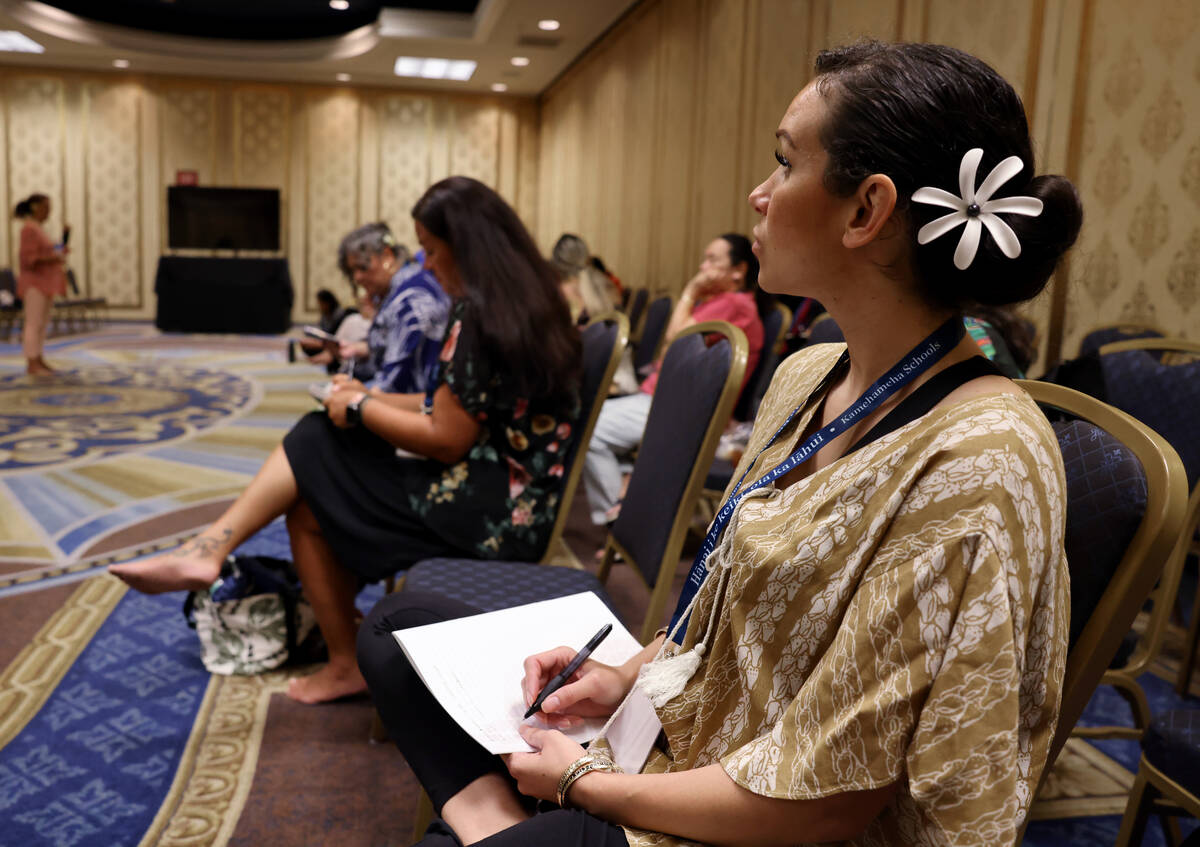 “Hawaii isn’t Hawaii without Hawaiians,” said Makaio Villanueva, who lives on Oahu and was attending the convention with his fiancee Nani Peterson. The couple was attending the convention to build connections with the Hawaiian community on the mainland U.S.