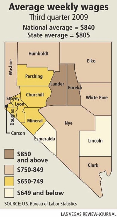Wages also dipped in Clark County, falling 1 percent through the third quarter to $804 a week. That’s below the nation’s $840 weekly average, which was down 0.1 percent, but the wage still ranks in the top half of the country’s 334 biggest counties. Clark County’s typical weekly wage placed No. 143 nationally.