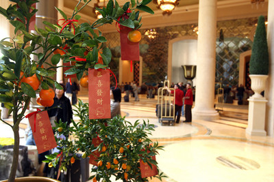 At The Venetian and Palazzo, much of the public areas of the two resorts will be decorated with red and gold color schemes and symbols of luck, such as golden coins, traditional tangerine trees, a wishing tree, silk banners and custom-made lotus lanterns.