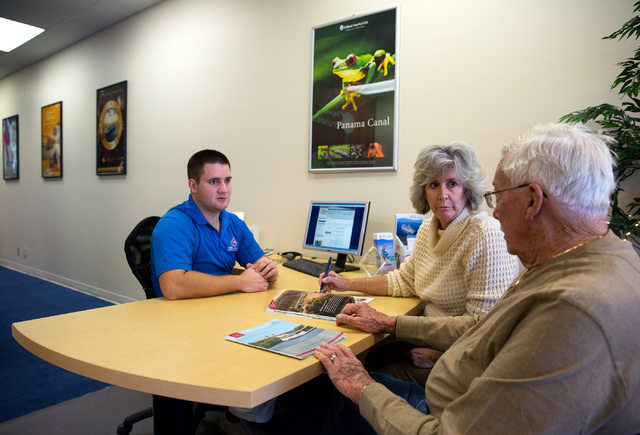 At Paradise Travel, 8516 W. Lake Mead Blvd., a large, bright yellow sign hangs outside with the words “Cruise Sale” printed in bold red letters.