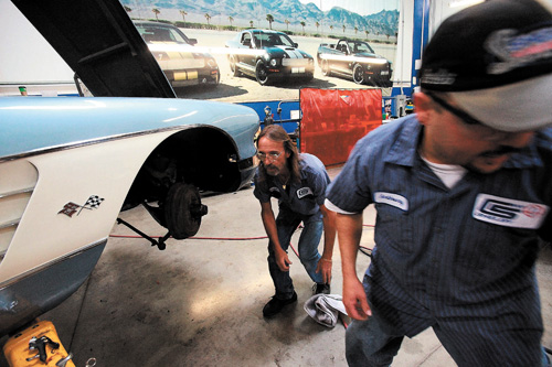 Nevarez pointed to a 1958 Corvette being restored as a 75th birthday present for a Las Vegas man's father. Nearby was a 2010 Camaro being fitted with a high-performance camshaft that will add 50 horsepower. A Chevy Cobalt was having a supercharger and custom exhaust system installed.