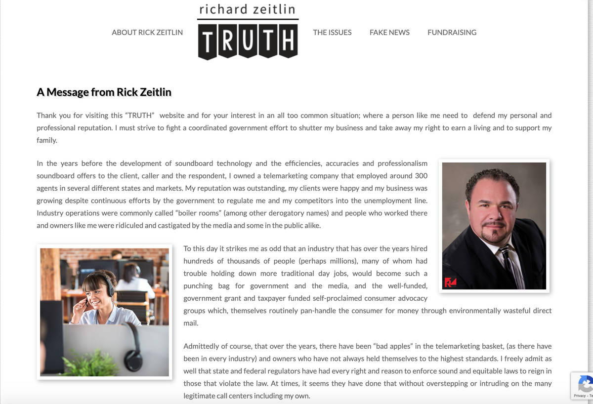 The FTC and attorneys general in various states shut down at least five of the charity clients that contracted with Courtesy Call, one of Zeitlin’s former companies, for allegedly misleading donors. Zeitlin was not a party in any of those lawsuits, nor were he or his companies accused of any wrongdoing.