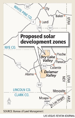 Other areas being studied by the Interior Department as potential solar development zones include Amargosa Valley in Nye County, Millers and Gold Point in Esmeralda County, East Mormon Mountain in Lincoln County and Dry Lake in Clark County near the Moapa River Indian Reservation.