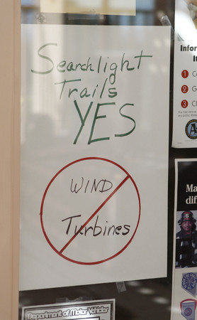 The ongoing tempest over a planned wind farm swept about 10 percent of Searchlight’s 600 citizens into the town’s community center Thursday afternoon.