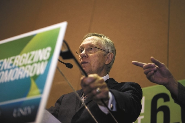 No wonder Senate Majority Leader Harry Reid chose to launch his sixth annual renewable energy conference at Mandalay Bay Tuesday with an update on the tribe’s solar development 40 miles northeast of Las Vegas.