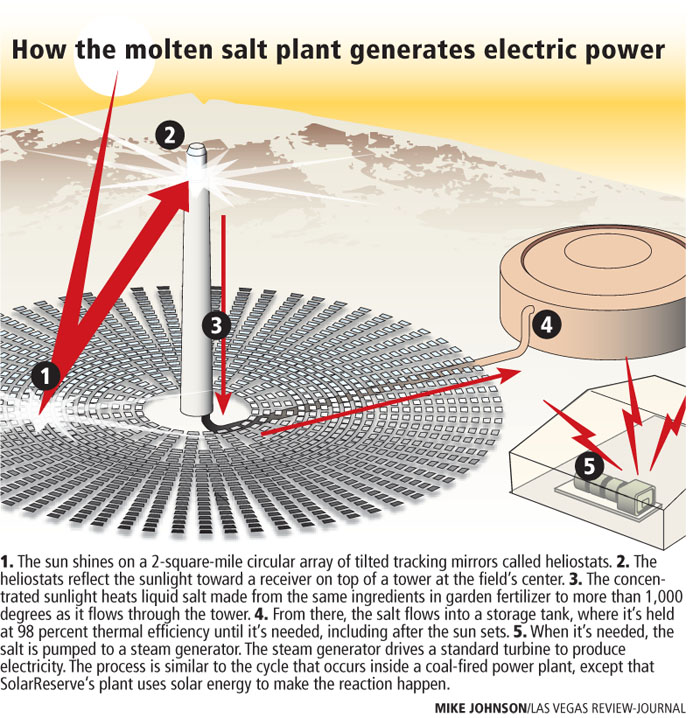 Kevin Smith, chief executive officer of California-based SolarReserve, said the company chose the Tonopah site not just for its abundant sunshine but also because of its proximity to transmission networks for distribution.