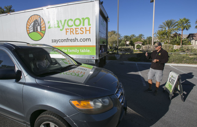 A Zaycon truck was in the Las Vegas area recently, delivering Alaskan sockeye salmon and Angus rib-eyes to customers who lined up in school and church parking lots in Las Vegas, Henderson and Boulder City.