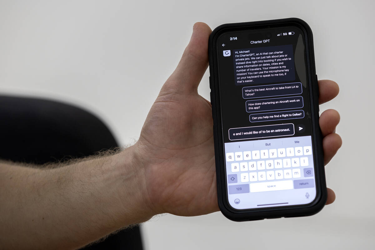 Dan Bubb, a former airline pilot who now works as an associate professor in UNLV’s Honors College, thinks CharterGPT could be a good addition to the private aviation industry because of the chances the technology could improve efficiency and profit margins for operators.