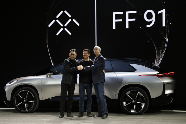 Faraday Future, the electric car startup that’s promised to build a $1 billion plant in North Las Vegas, gave audiences a look at its FF 91 electric car late Tuesday at a CES 2017 event in Las Vegas.