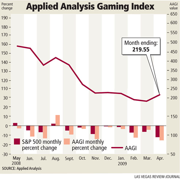 The Applied Analysis Gaming Index grew 30 points in April to 219.55, the first time the index has shown an increase since December.