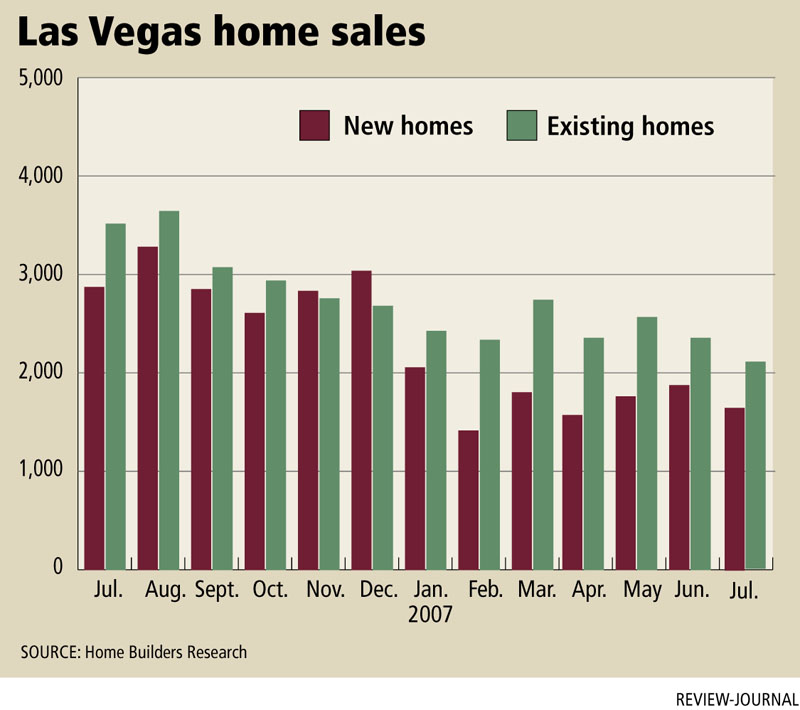The firm counted 1,724 recorded sales of new homes during the month, down nearly 40 percent from July 2006. The 859 new home permits pulled in Las Vegas, North Las Vegas, Henderson and Clark County are down 45.2 percent from a year ago.