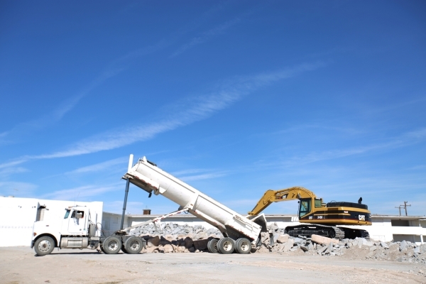But these days, there is activity on the property. Trucks are delivering Project Neon road debris, and construction vehicles are recycling concrete at 840 W. Bonanza Road as Las Vegas-based Rebel Sand & Gravel has an air quality permit for a project called Moulin Rouge Restoration.