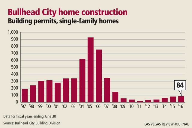 In the Las Vegas Valley, builders aren’t selling nearly as many houses as they did during the boom times, and likely won’t anytime soon. But construction has recouped more of its losses in America’s casino capital than in smaller areas outside Las Vegas such as Bullhead City.