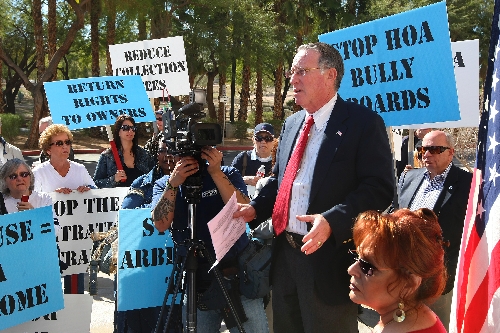 Bob Robey, a Sun City Summerlin resident and rally organizer, said he wants his civil rights returned. There's no separation of power with the HOA board of directors. They write the rules, enforce the rules and issue the fines, he said.