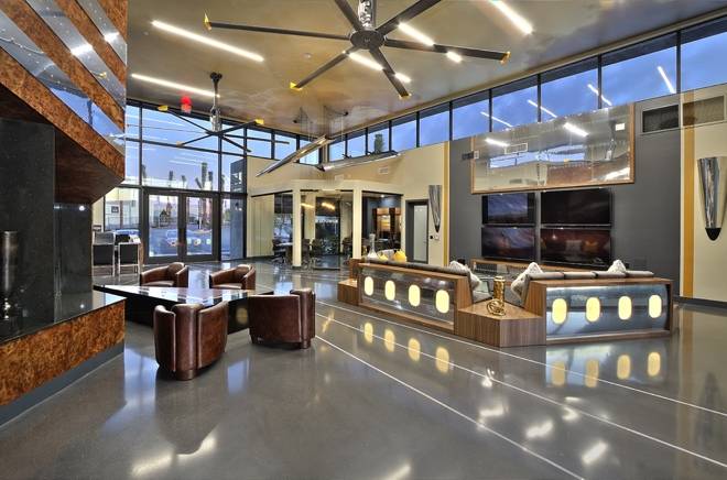 The community has a swimming pool, sauna and steam room, fitness center, dog park and pet wash, as well as a children’s playground. There’s also a clubhouse, decorated with pieces from World War II aircraft, that has a business center and self-serve café.