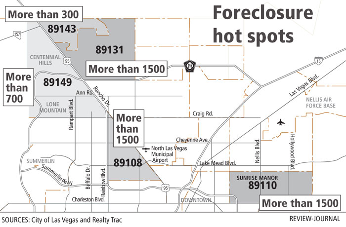 Her 89131 ZIP code has 1,515 foreclosed properties and 882 in preforeclosure, according to data the city compiled from the Realty Trac service. Two other ZIP codes — 89108 and 89110 — also have more than 1,500 foreclosed properties.