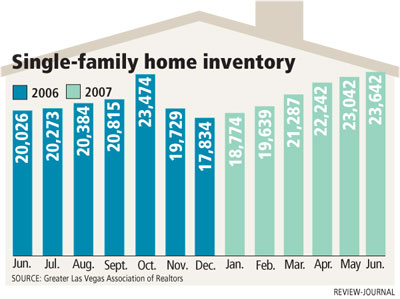 The inventory of single-family homes available for sale in Las Vegas climbed to a record 23,642 in June, topping the previous peak of 23,474 in October, the Greater Las Vegas Association of Realtors reported Monday.