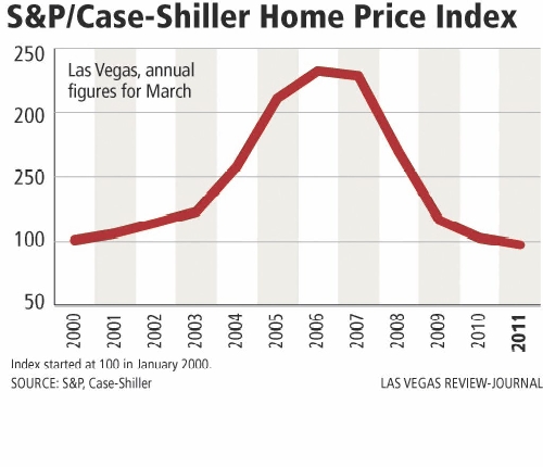 Standard & Poor's National Case-Shiller Home Price Index on Tuesday showed home prices hitting a new recession low for Las Vegas and the nation.