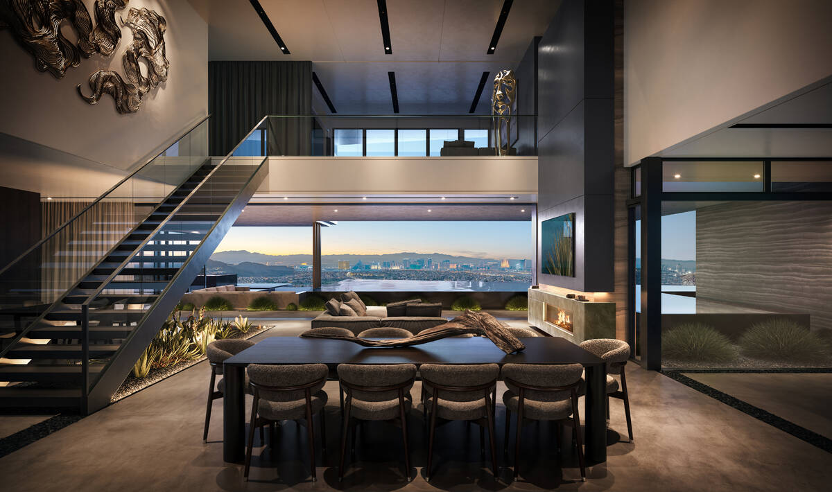 Another Blue Heron home made the list with Egress, a two-story, five-bed, seven-bath, five-car garage over 7,050 square feet home. Located in the luxury community Ascaya, the home is nestled within the surrounding desert landscape with views of the Strip and mountains. Made for entertaining, the home will include a media room and wet bar. The home is set to be completed in November.