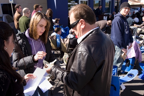 Seated on collapsible chairs in the parking lot, most attendees create miniature war rooms with laptops that allow real-time viewing of properties and hands-free cell phones that connect them with associates off site.
