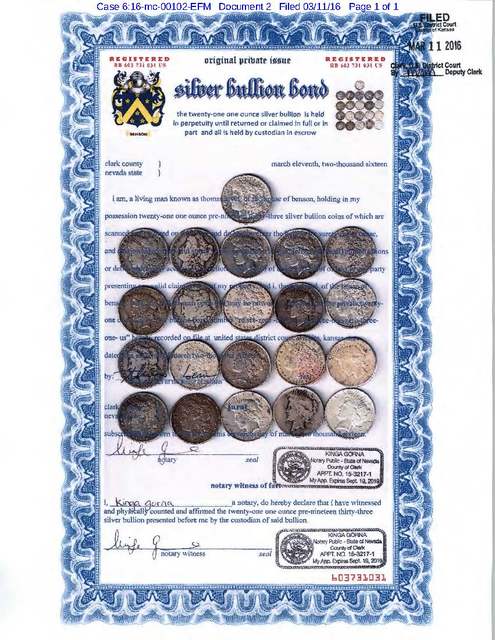 ■ He incorporated a business in Missouri called THOMAS ARVEL BENSON and filed a $499,999,999.99 lien against it.