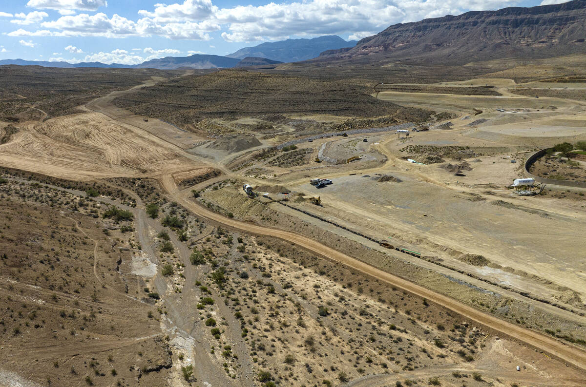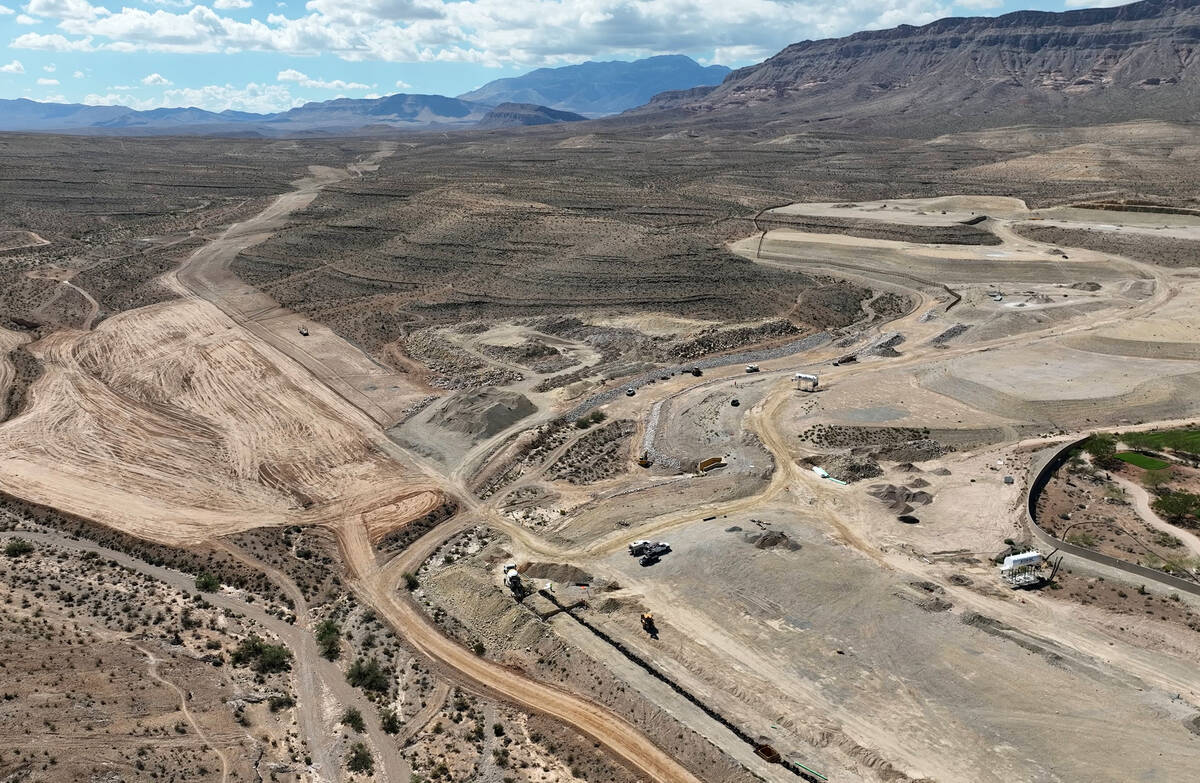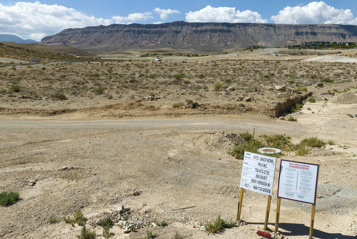 The homebuilder’s 231-acre project site, as approved by Clark County commissioners in August 2024, is located in a small valley. The site is bordered to the east by a county-owned ridge and encompasses the ridge to the west and the valley floor, records show.
