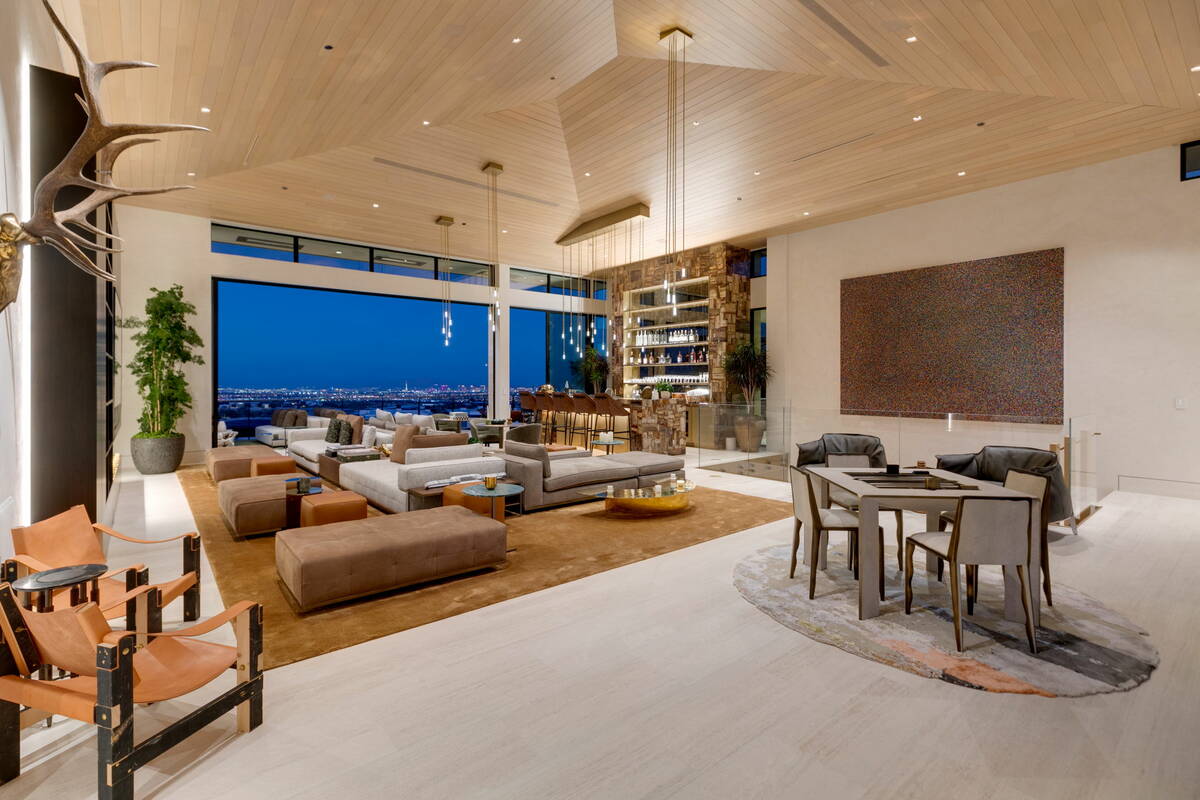 The two-level home has four bedrooms, five baths and 7,327 of livable square footage, located on an 0.52-acre lot. Each floor has two bedrooms and in the center on the second floor is a “sophisticated New York lounge,” with “dead-on Strip views,” Sher said.
