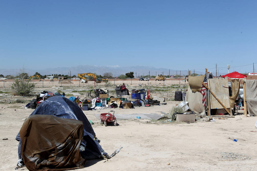 A homeless camp next to the northeast valley project site has a motor home, shopping carts, tents, a couch and other items scattered about. There’s even a makeshift kitchen of sorts, with a stocked pantry, cookware and a small table.