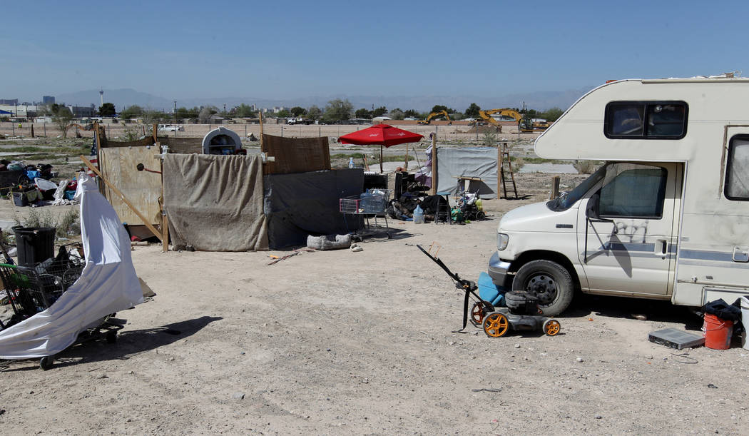 Construction crews were doing site work Tuesday at the property. But next door, the only signs of life were a dog tied to the motor home and a person sleeping outside near the RV, who didn’t budge.