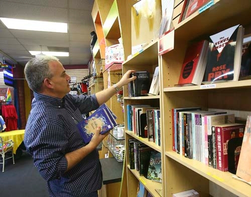 He still sells books, but his stock is largely limited to new editions by local gay authors and discounted editions of older tomes. The rest of his store is filled with gift items such as jewelry, greeting cards and T-shirts.