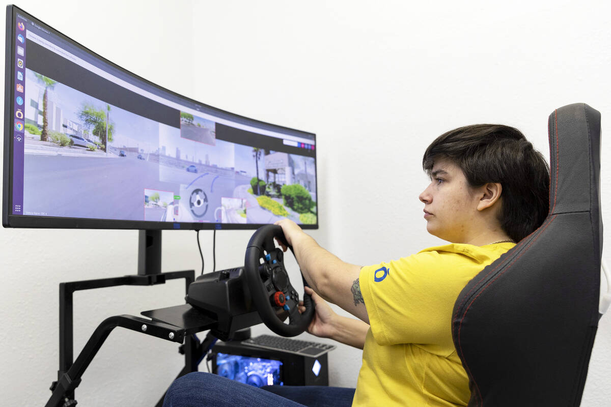 The remote driver utilizes six cameras to stream video at Halo.Car’s office. The operators’ workspace is similar to that of an arcade game with a steering wheel, pedals and large computer screen.