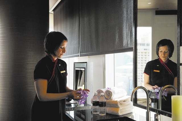 Executive business traveler Michelle Banuchi seeks peace on her Las Vegas trips. She visited for business for three days in early March and squeezed in a custom, 90-minute massage at the Mandarin Oriental spa.
