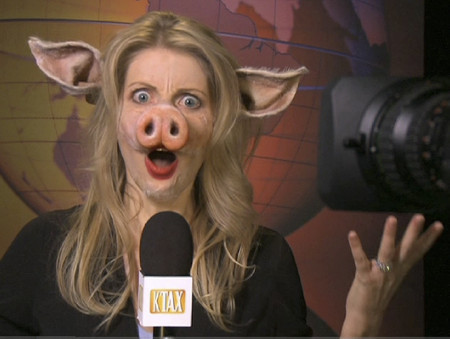 On top of the chimp spots, there's a print ad claiming California will be more pro-business when pigs fly, as well as a radio spot with an actor portraying a businessman getting the shaft.