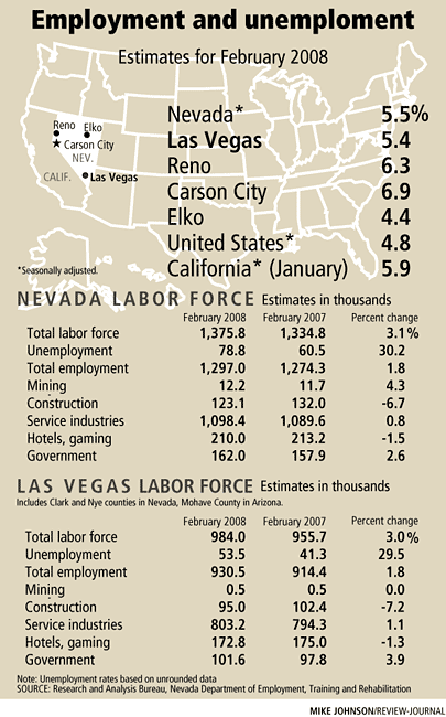CARSON CITY — Nevada’s jobless rate remained unchanged in February from the previous month, staying at 5.5 percent, a state agency reported Friday.