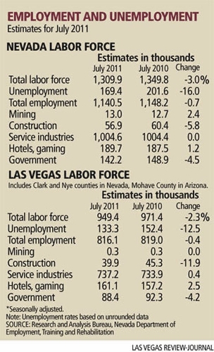 Nevada’s jobs market posted another disappointing month in July, with experts predicting continued unemployment struggles at least through the end of 2011.