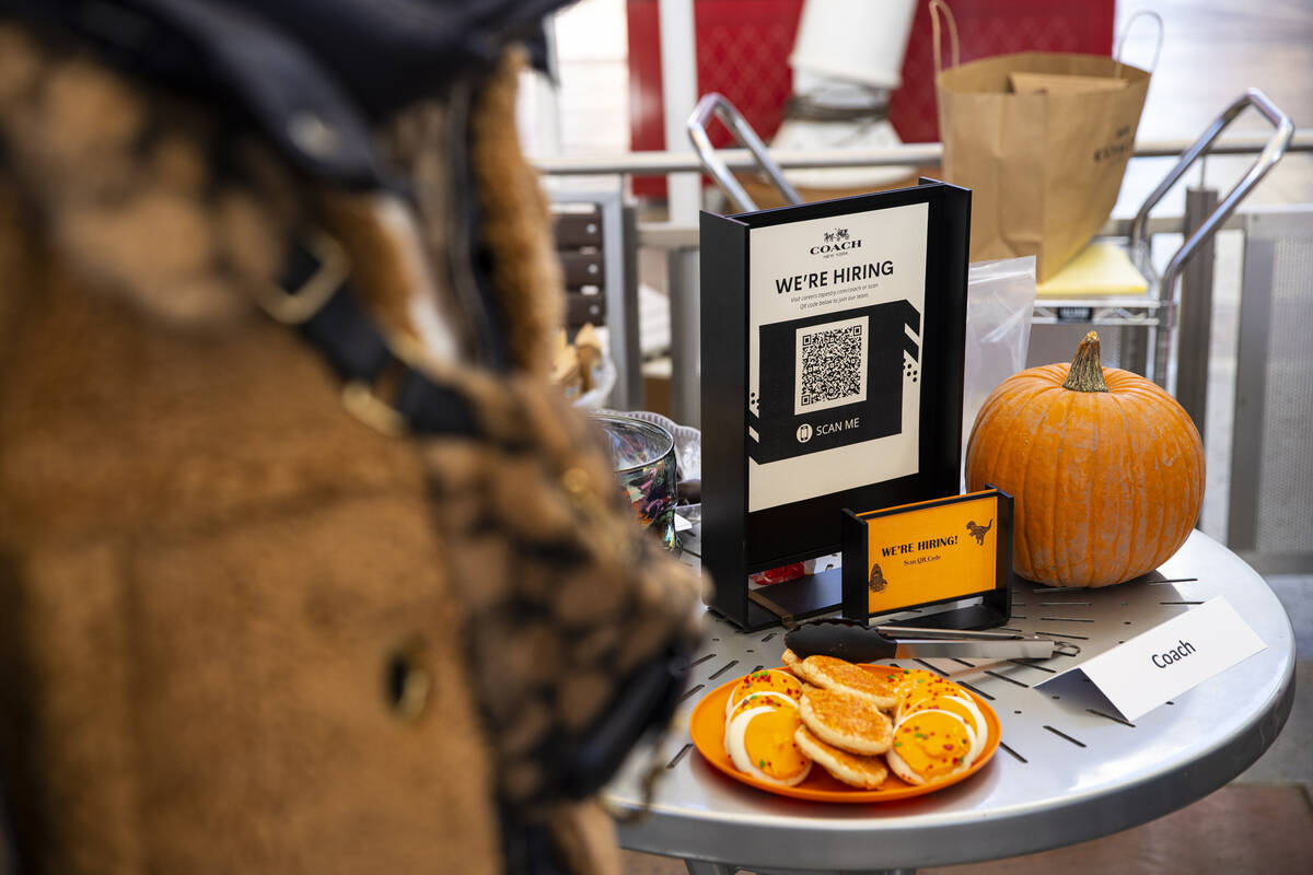 Retailers at Las Vegas North Premium Outlets enticed job seekers on Thursday morning with a variety of tactics, from sugar cookies coated with orange icing, treats from Starbucks to a goody bag featuring a QR-code leading to an online job application.