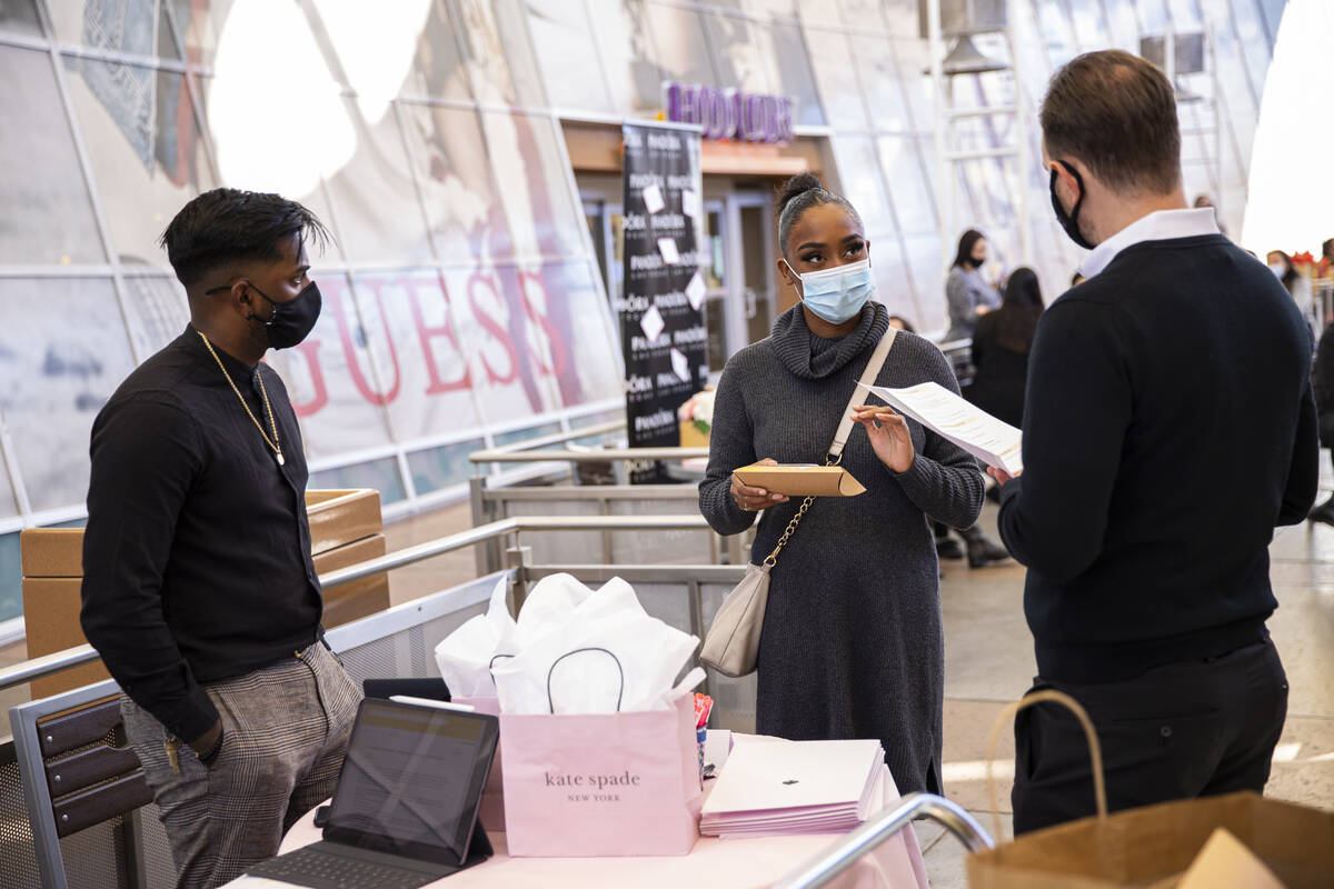 “The turnout has been very light, but we’re hoping it picks up later because Las Vegas is a later-type town,” said Vicki Rousseau, area director of marketing and business development for the North and South Premium Outlets. “It’s been challenging for (retailers) to find employees, so that’s why we figured if we got everybody together, we would hopefully help them see a pickup in employment.”