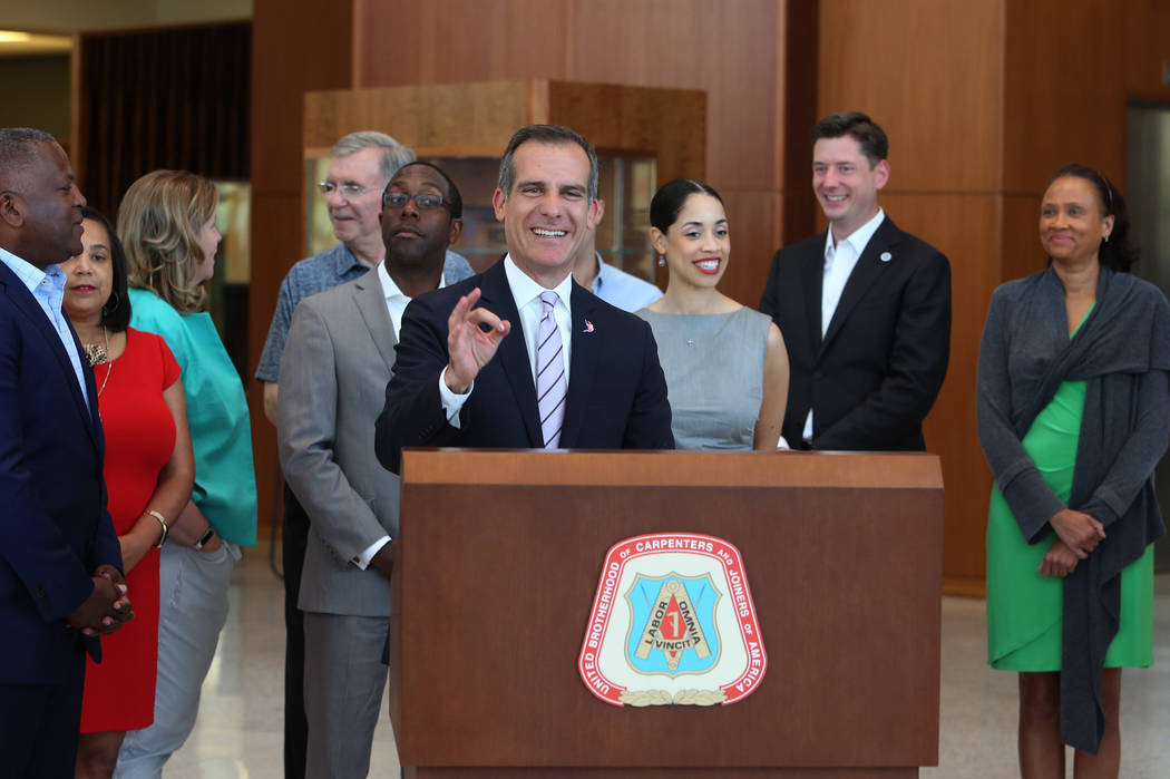 With a national shortage of construction workers, Garcetti said it’s important to build up a workforce to reinvest in America’s infrastructure.