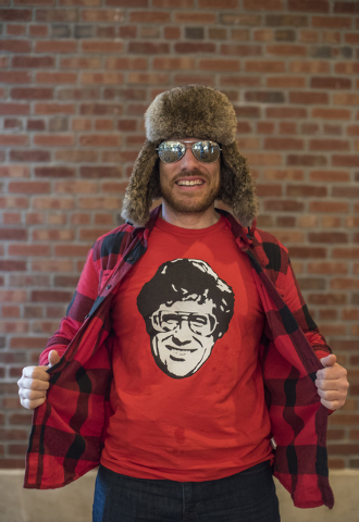 Ryan Smolkin credits Smoke, the middle-aged man wearing glasses as seen on the red T-shirt he’s wearing, as the visionary behind his restaurant, Smoke’s Poutinerie.
