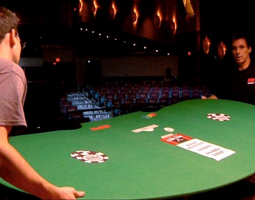 Three years later, Racener finds himself on stage in the biggest poker show around.