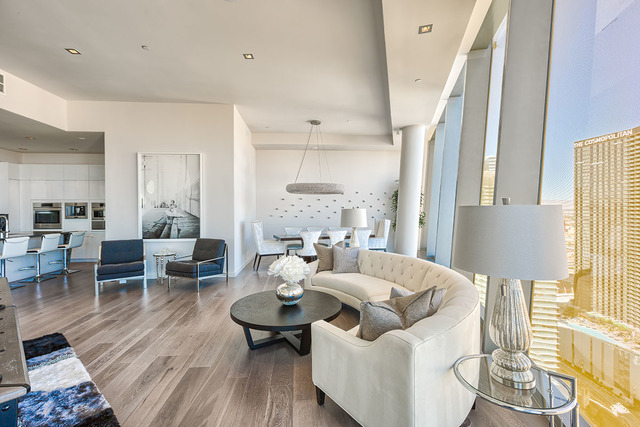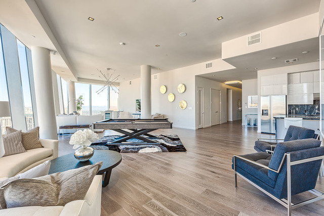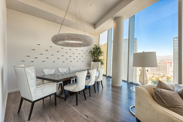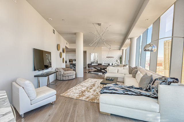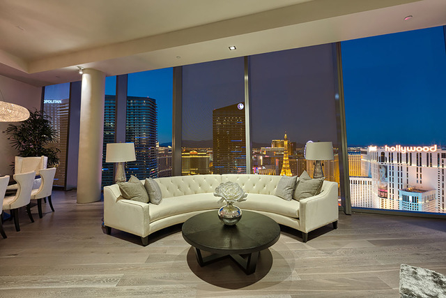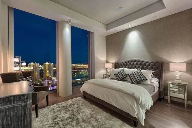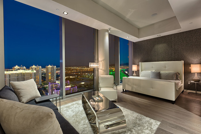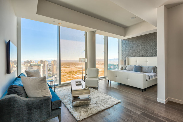 “It has the longest stretch of floor-to-ceiling windows of any unit in Las Vegas, making the view ever-present and quite unique,” said owner James Park of the view provided by 13-foot-high windows.