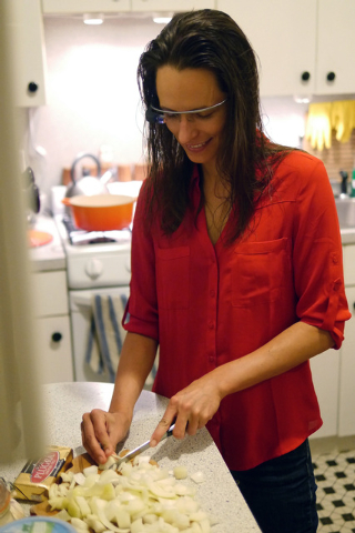Cooking with Glass, for example, frees my hands to stir, chop and season instead of leafing through a cookbook or getting grease on a tablet computer. Playing games on Glass by nodding my head around or shouting things was fun, once I got over the looking-crazy part. Or maybe that was part of the appeal. My favorite activity, hands down, is winking to take a photo, hands-free.