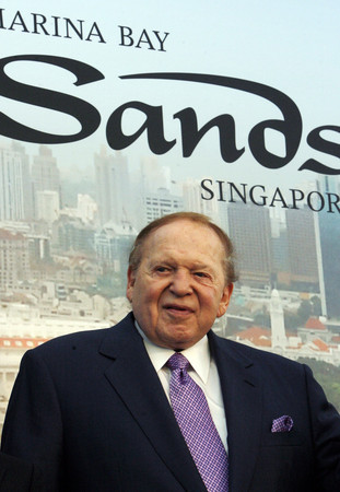Adelson was in Singapore for the completion of the three hotel towers at the Marina Bay Sands. He said the hotel, casino and entertainment complex would open in January or February instead of December as the company predicted this year. He said the opening is being delayed because of problems sourcing construction materials.