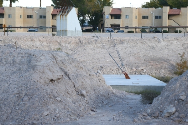 Signs at the site of the never-built wheel, across from Mandalay Bay, advertise the 38.5-acre land parcel for sale. Las Vegas Stripfront land is rare and a space that size could accommodate a casino project.